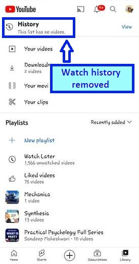 當您刪除YouTube歷史記錄時,YouTube將刪除您在其上觀看的任何影片的記錄。只有在您登入並且資料在平臺的伺服器端可用時,您的觀看歷史記錄才會保留。當您登入到任何裝置時,您可以訪問您的YouTube歷史記錄。