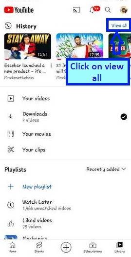 您可以在手機螢幕頂部看到觀看影片的歷史記錄。您還可以看到“檢視全部”按鈕,點選“檢視全部”按鈕。
