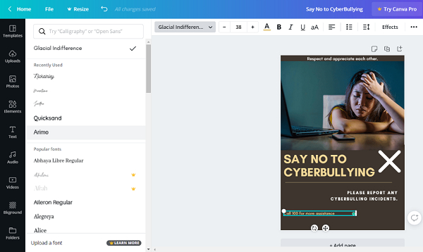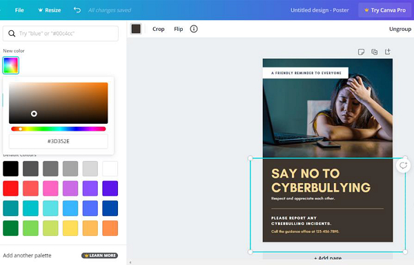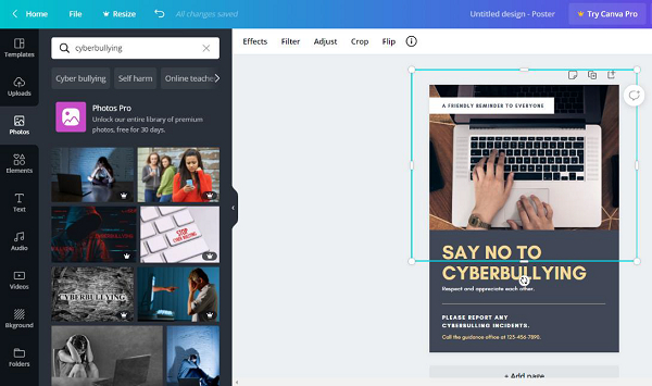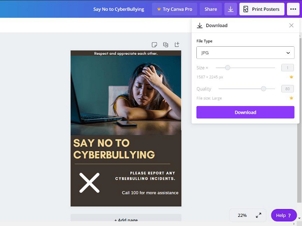 以下是我們將為您的網路欺凌宣傳海報執行的操作。