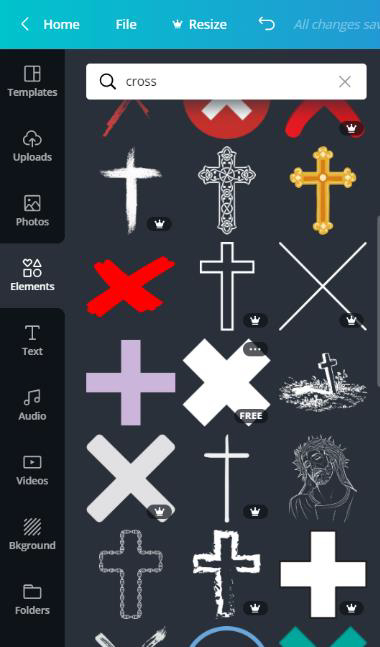 使用工具欄搜尋最合適的元素。您還可以選擇它並更改顏色、調整大小或翻轉它。
