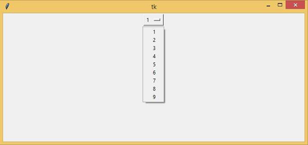 假設在某個應用程式中,我們在下拉列表中為使用者提供了一組固定選項或選擇。可以使用OptionMenu 小部件建構函式建立選項或選擇。