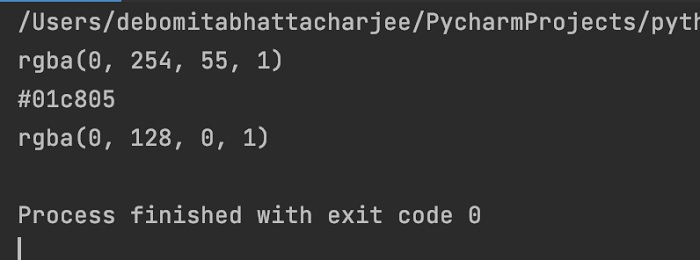 Selenium 具有顏色轉換支援類。我們必須新增 from selenium.webdriver.support.color import Color 語句以將顏色轉換為 rgba/hex 格式。