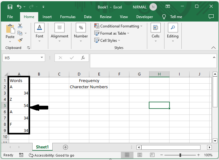讓我們來看一個簡單的過程,瞭解如何在Excel區域中確定字元、文字或字串的頻率。