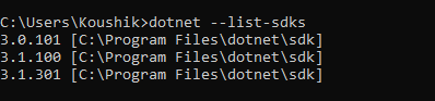 列印已安裝的 .NET Core SDK 列表。