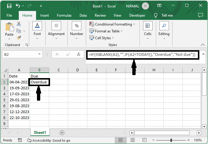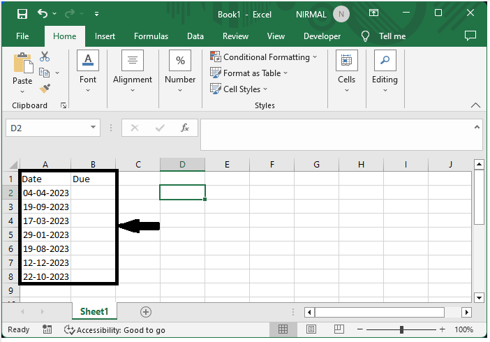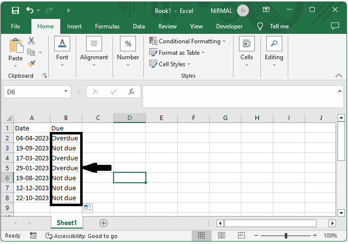 這裡我們將首先使用公式獲取第一個值,然後使用自動填充柄完成任務。讓我們來看一個簡單的過程來確定Excel中的日期是否已過。