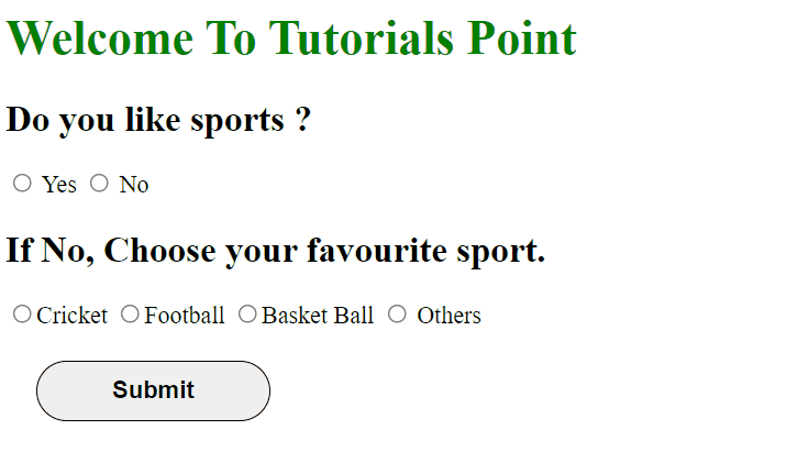 單選按鈕是一種輸入型別,以選項的形式接收輸入。使用者將從多個選項中選擇一個值。在多個可能的選項中,只能選擇一個。