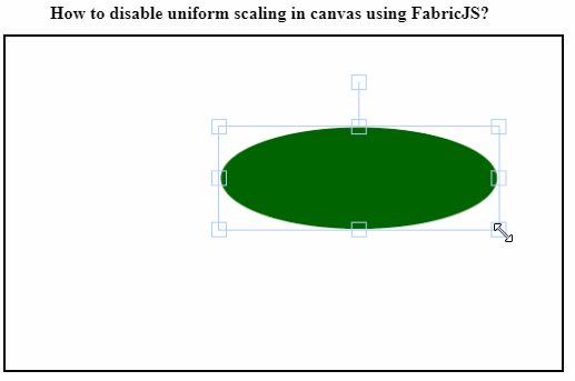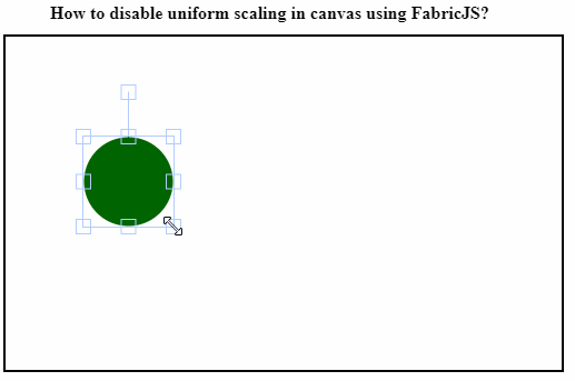 讓我們來看一個程式碼示例,說明當uniformScaling設定為False時,物件如何非均勻縮放。從 FabricJS 版本 4 開始,屬性 uniScaleTransform 已被移除並替換為uniformScaling。