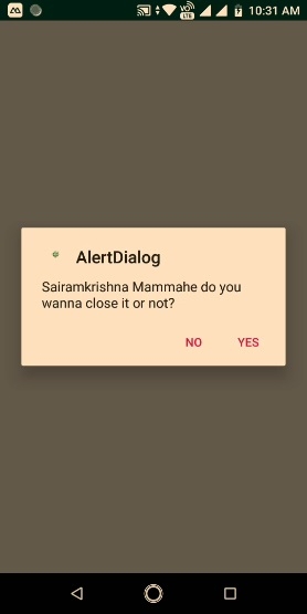 alertDialog.setMessage("Sairamkrishna Mammahe do you wanna close it or not?");