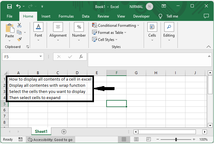在這裡,我們將首先選擇單元格範圍,然後使用自動換行來完成任務。因此,讓我們看看一個簡單的過程,瞭解如何在 Excel 中顯示單元格的所有內容。