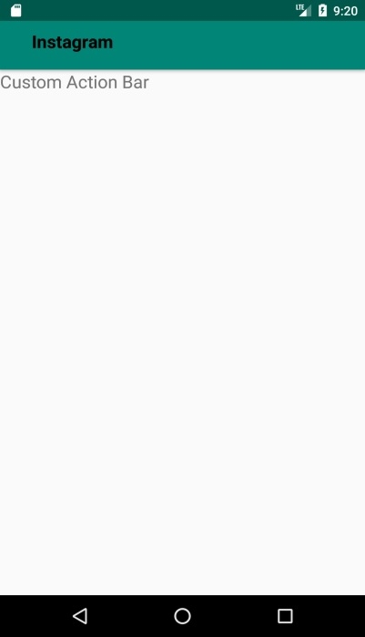 <?xml version="1.0" encoding="utf-8"?> <LinearLayout xmlns:android="http://schemas.android.com/apk/res/android" xmlns:app="http://schemas.android.com/apk/res-auto" xmlns:tools="http://schemas.android.com/tools" android:layout_width="match_parent" android:layout_height="match_parent" tools:context=".MainActivity"> <TextView android:layout_width="wrap_content" android:layout_height="wrap_content" android:text="Custom Action Bar" android:textSize="20sp"/> </LinearLayout>