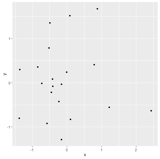 x<-rnorm(20) y<-rnorm(20) Scatter_data<-data.frame(x,y) Scatter_data