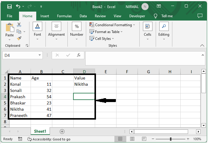 考慮任何 Excel 工作表,其中工作表中的資料類似於下圖。