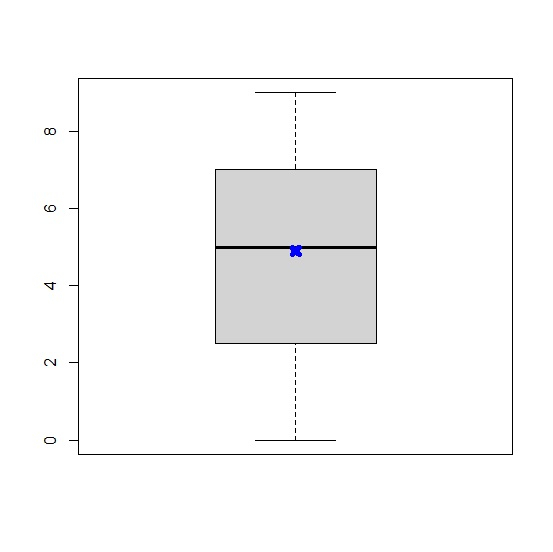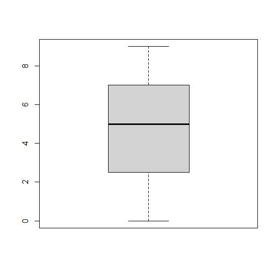 x<-sample(0:9,100,replace=TRUE) boxplot(x)