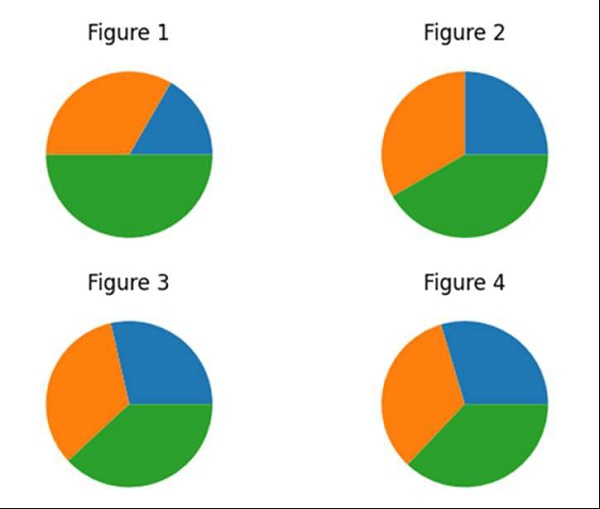 初始化行數和列數。nrows*ncols 個子圖將被建立在當前圖形中。nrows = 2 且 ncols = 2,即 2*2 = 4 個子圖可以被建立。