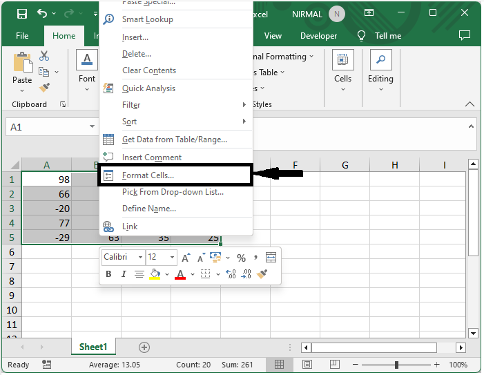 在這裡,我們將格式化單元格範圍以完成任務。讓我們來看一個簡單的過程,學習如何在Excel中用括號顯示負數。
