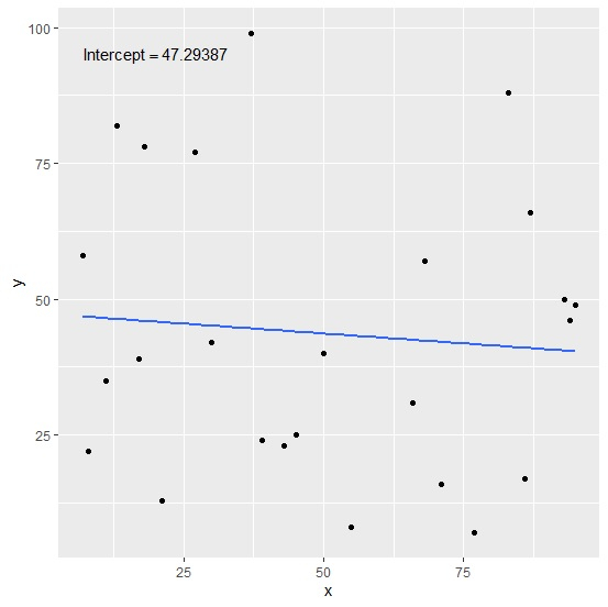 0,y=95,label=(paste0("Intercept==",coef(lm(df$y~df$x))[1])),parse=TRUE)