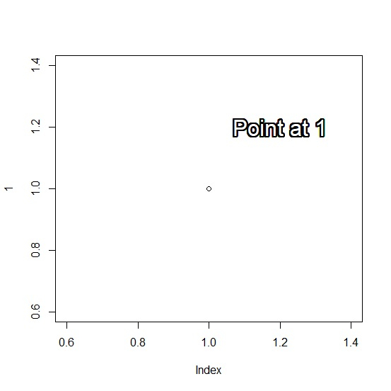 plot(1) shadowtext(1.2,1.2,"Point at 1",col="white",cex=2)