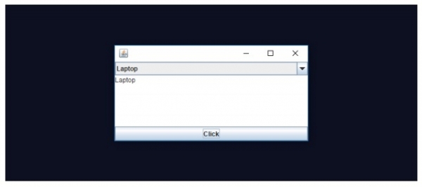 以下是一個示例,顯示如何在 Java 中顯示 JComboBox 中的第一個元素