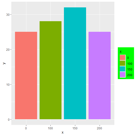 > ggplot(df,aes(x,y,fill=x))+geom_bar(stat="identity")+theme(legend.background=element