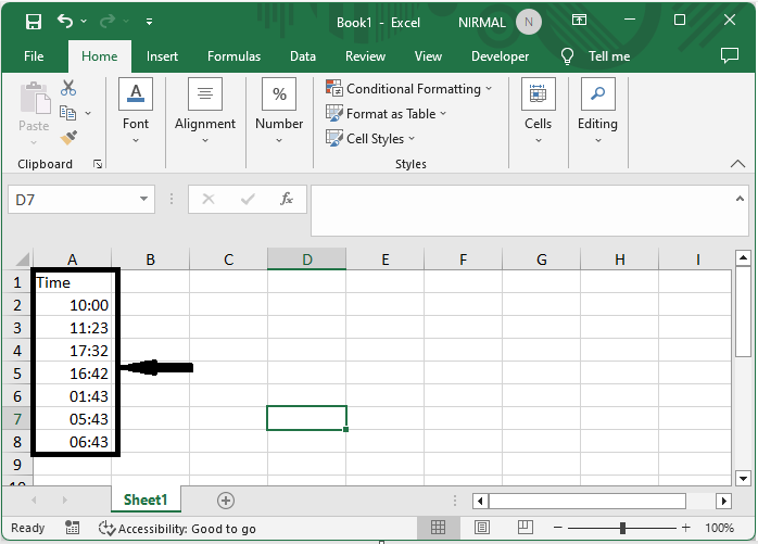 在這裡,我們將格式化單元格範圍以完成任務。讓我們來看一個簡單的過程,瞭解如何在Excel中僅以分鐘格式顯示時間。