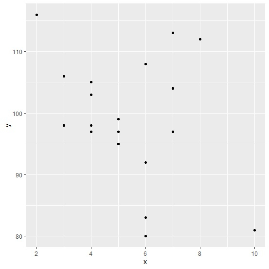 library(ggplot2) ggplot(df,aes(x,y))+geom_point()