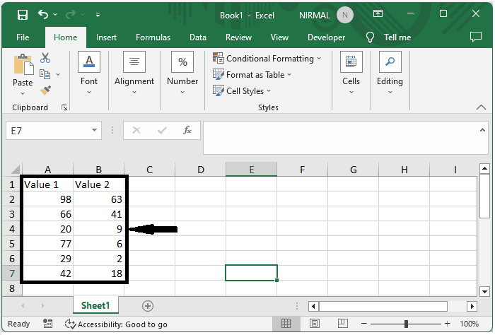 假設您有一個 Excel 工作表,其中包含兩個類似於下圖的數字列表。