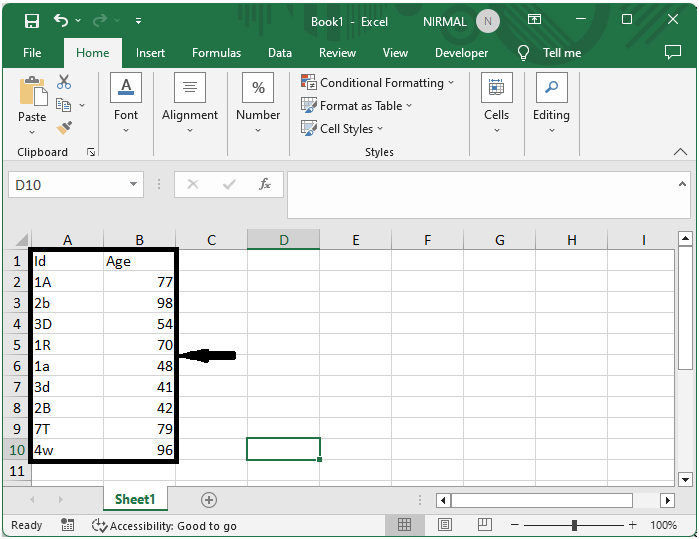 在這裡,我們將使用公式來完成任務。讓我們來看一個簡單的步驟,學習如何在Excel中進行區分大小寫的VLOOKUP查詢。