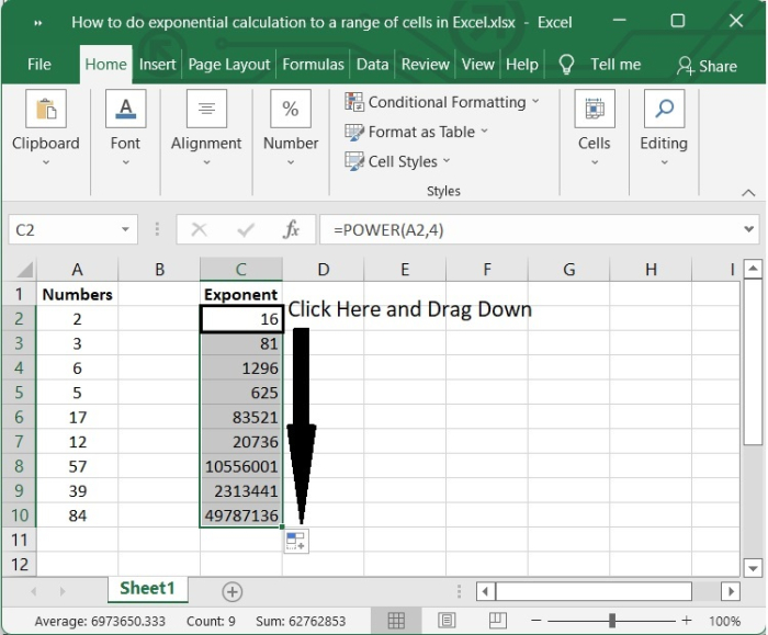 讓我們來看一個例子,演示如何使用冪符號對單元格區域進行指數計算,以便了解其工作原理。