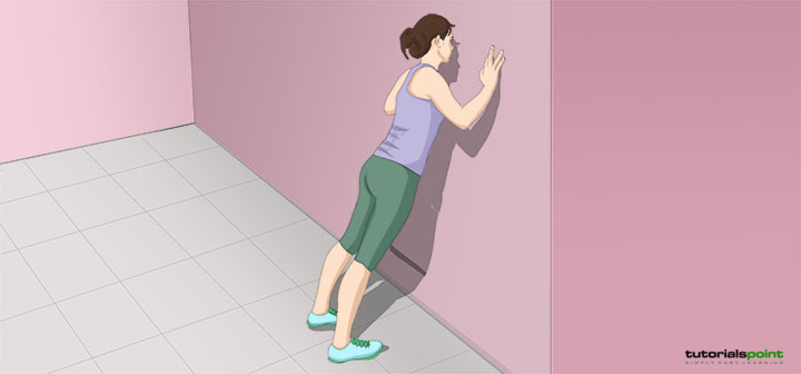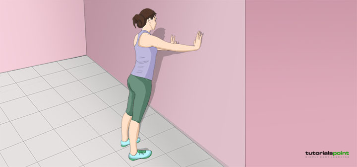 要進行靠牆俯臥撐,面向牆壁站立,將你的手放在牆上,與肩同寬。將你的雙腳與牆壁保持幾英寸的距離。