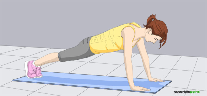 保持背部挺直,核心肌肉收緊,彎曲你的手臂,將身體向地面降低。回到起始位置,並保持身體在整個動作過程中挺直。