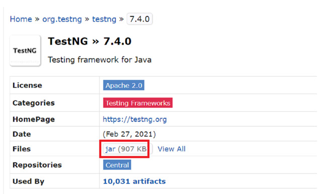 要下載 TestNG jar 檔案,請訪問 https://mvnrepository.com/