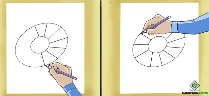 花瓣將從中心向外生長。因此,每個花瓣側面的線條都遠離花朵的中心。想想太陽的光芒可能是什麼樣子;花瓣的效果與此類似。在下圖中,我們的小太陽夥伴將陪伴我們,並作為對這個重要主題的有用提醒。