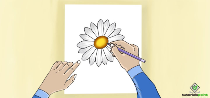 在第一個花瓣旁邊畫第二個花瓣,然後留出一些空間再畫第三個花瓣。透過在隨機位置繪製,繪製剩餘的花瓣以完成雛菊。