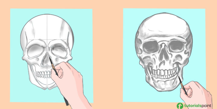 其次,在給骷髏頭新增陰影時使用不同的壓力。這將創造更逼真的外觀和紋理。