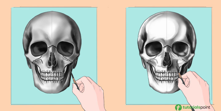 第三,為骷髏頭新增陰影和高光。這將使頭部看起來更立體和逼真。