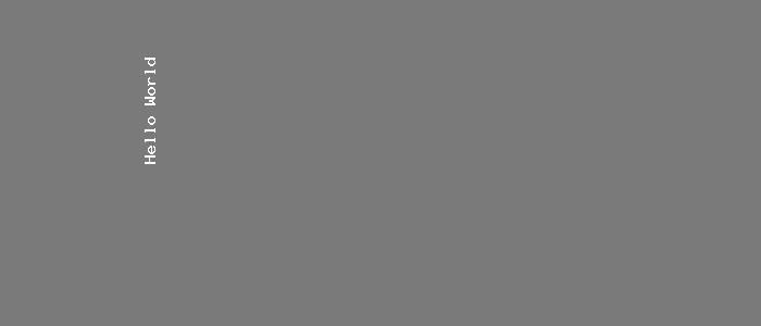 <?php // Create a 250*190 image using imagecreatetruecolor() function $img = imagecreatetruecolor(700, 300); // Set the background color of the image $bgcolor = imagecolorallocate($img, 122, 122, 122); // Fill background with above-selected color imagefill($img, 0, 0, $bgcolor); // Write the white color text $textcolor = imagecolorallocate($img, 255, 255, 255); imagestringup($img, 6, 130, 150, 'Hello World', $textcolor); // Output the picture to the browser header('Content-type: image/png'); imagepng($img); ?>