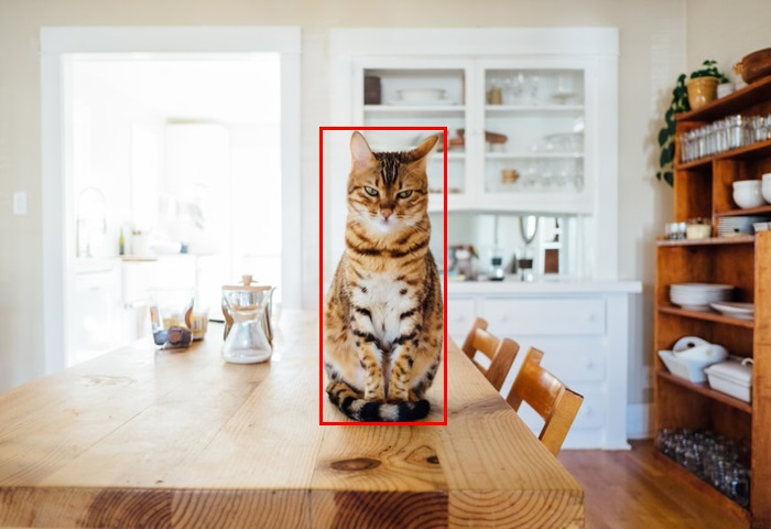 # Import the required libraries import torch import torchvision from torchvision.io import read_image from torchvision.utils import draw_bounding_boxes # read input image img = read_image('cat.png') # bounding box in (xmin, ymin, xmax, ymax) format # top-left point=(xmin, ymin), bottom-right point = (xmax, ymax) bbox = [290, 115, 405, 385] bbox = torch.tensor(bbox, dtype=torch.int) print(bbox) print(bbox.size()) bbox = bbox.unsqueeze(0) print(bbox.size()) # draw bounding box on the input image img=draw_bounding_boxes(img, bbox, width=3, colors=(255,255,0)) # transform it to PIL image and display img = torchvision.transforms.ToPILImage()(img) img.show()