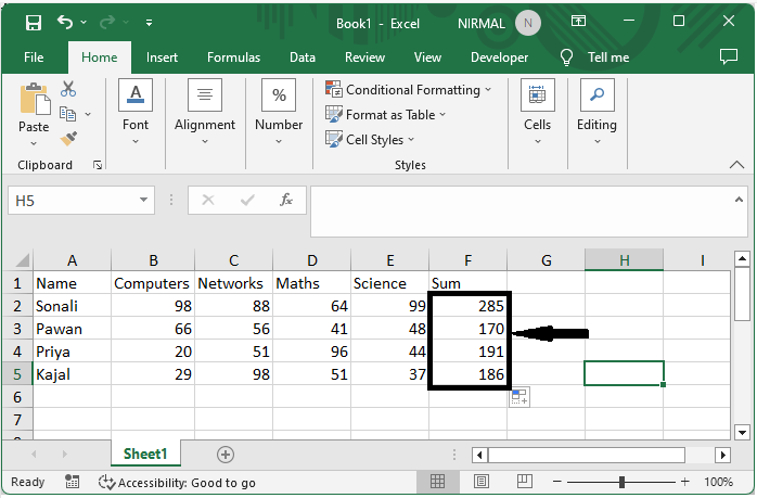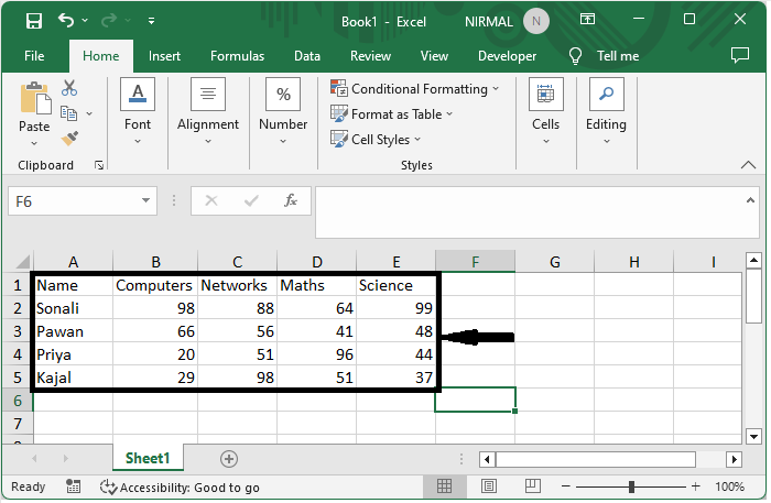 在這裡,我們將對每個值使用公式,然後使用自動填充功能來完成任務。讓我們來看一個簡單的過程,瞭解如何在Excel中去除最低分並計算值的平均值或總和。