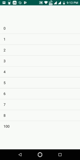 <?xml version = "1.0" encoding = "utf-8"?> <LinearLayout xmlns:android = "http://schemas.android.com/apk/res/android" android:orientation = "vertical" android:layout_width = "match_parent" android:gravity = "center" android:layout_height = "match_parent"> <ListView android:id = "@+id/list" android:layout_width = "fill_parent" android:layout_height = "wrap_content" /> </LinearLayout>