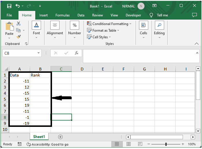 在這裡,我們將使用 RANK 和 COUNTIF 公式來獲取第一個值,然後使用自動填充柄來完成任務。讓我們來看一個簡單的過程,瞭解如何在 Excel 中輕鬆對列表進行無重複值的排名。