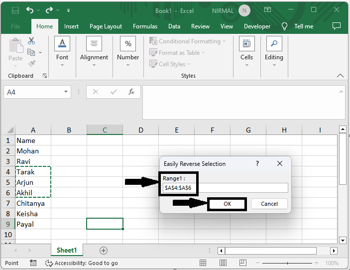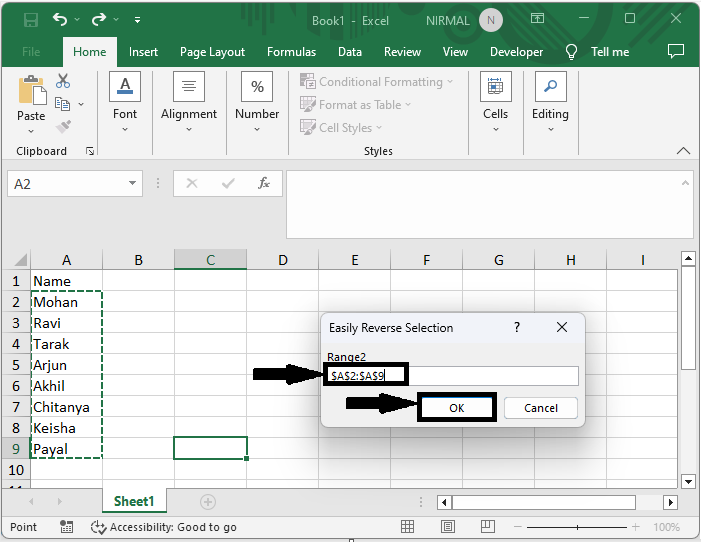 最後,選擇範圍內的所有單元格,然後單擊“確定”以完成任務。