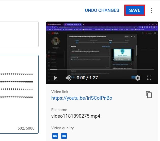 將開啟您所選影片的影片詳細資訊頁面。您可以看到描述框,其中寫著您舊的描述。