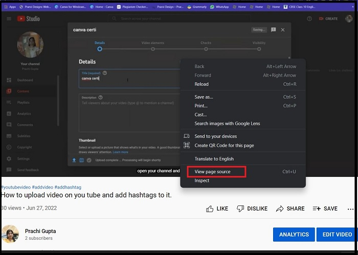 使用 Chrome 或 Firefox 訪問影片頁面。右鍵單擊頁面,然後選擇檢視原始碼。