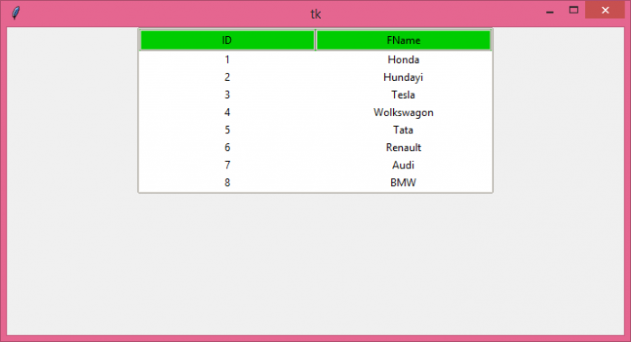 tree.insert('', 'end',text= "8",values=('8', 'BMW'))