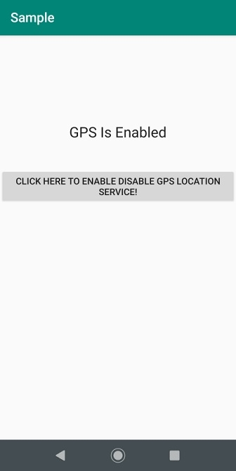 import android.content.Context; import android.content.Intent; import android.location.LocationManager; import android.provider.Settings; import android.support.v7.app.AppCompatActivity; import android.os.Bundle; import android.view.View; import android.widget.Button; import android.widget.TextView; public class MainActivity extends AppCompatActivity { Button button; Context context; Intent intent1; TextView textview; LocationManager locationManager ; boolean GpsStatus ; @Override protected void onCreate(Bundle savedInstanceState) { super.onCreate(savedInstanceState); setContentView(R.layout.activity_main); button = (Button)findViewById(R.id.button1); textview = (TextView)findViewById(R.id.textView1); context = getApplicationContext(); CheckGpsStatus(); button.setOnClickListener(new View.OnClickListener() { @Override public void onClick(View v) { // TODO Auto-generated method stub intent1 = new Intent(Settings.ACTION_LOCATION_SOURCE_SETTINGS); startActivity(intent1); } }); } public void CheckGpsStatus(){ locationManager = (LocationManager)context.getSystemService(Context.LOCATION_SERVICE); assert locationManager != null; GpsStatus = locationManager.isProviderEnabled(LocationManager.GPS_PROVIDER); if(GpsStatus == true) { textview.setText("GPS Is Enabled"); } else { textview.setText("GPS Is Disabled"); } } }