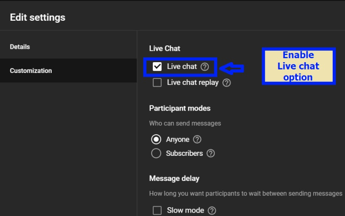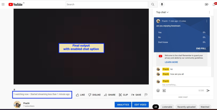 在 YouTube 上直播時啟用即時聊天的分步過程如下: