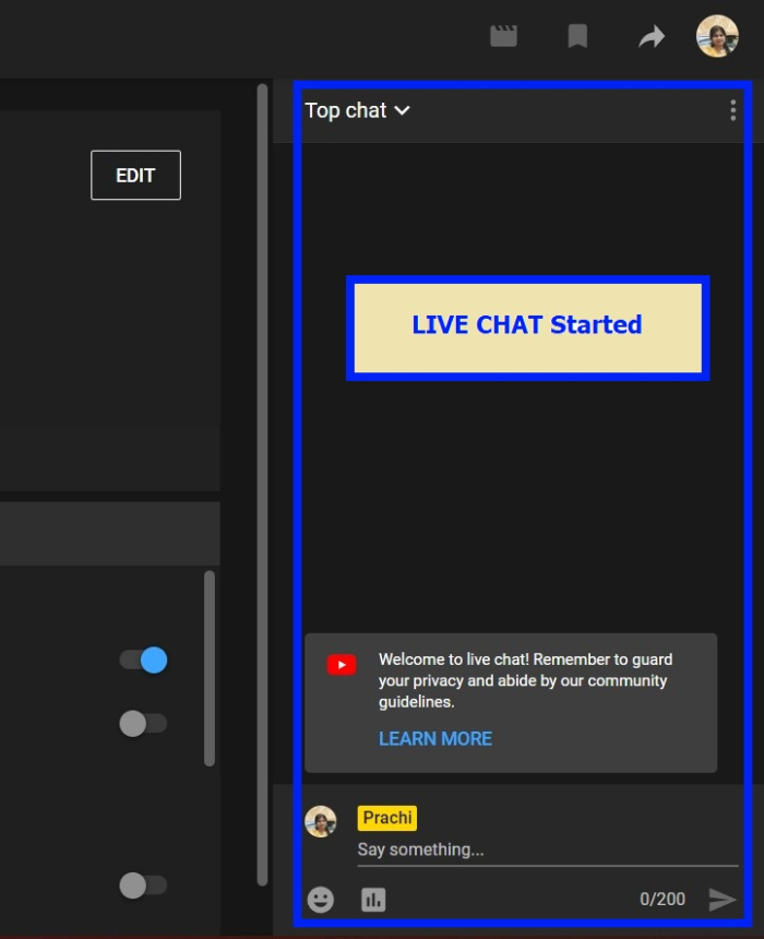 如果要在直播過程中停用聊天,請點選如下所示的“編輯”。