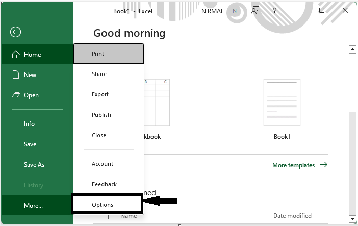開啟任何 Excel 表格。首先,單擊“檔案”,然後選擇“選項”。