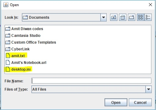 以下是如何在 JFileChooser 中啟用隱藏檔案顯示的一個示例 −