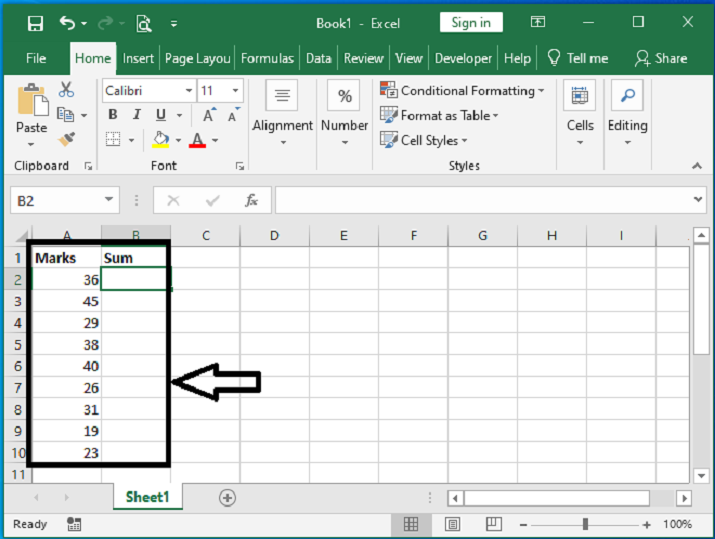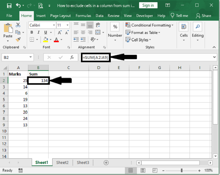 讓我們來看一個簡單的過程,瞭解如何在Excel中從求和中排除列中的單元格。